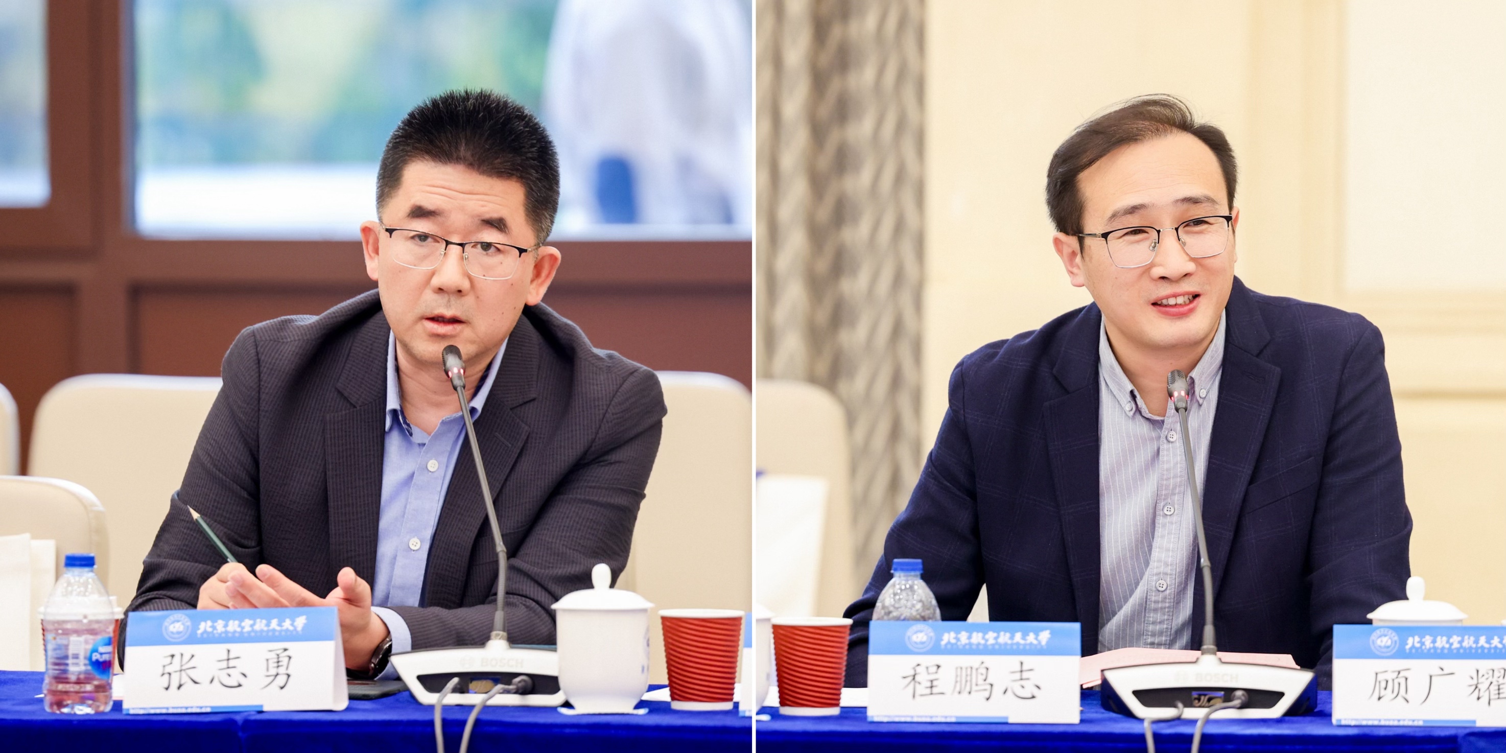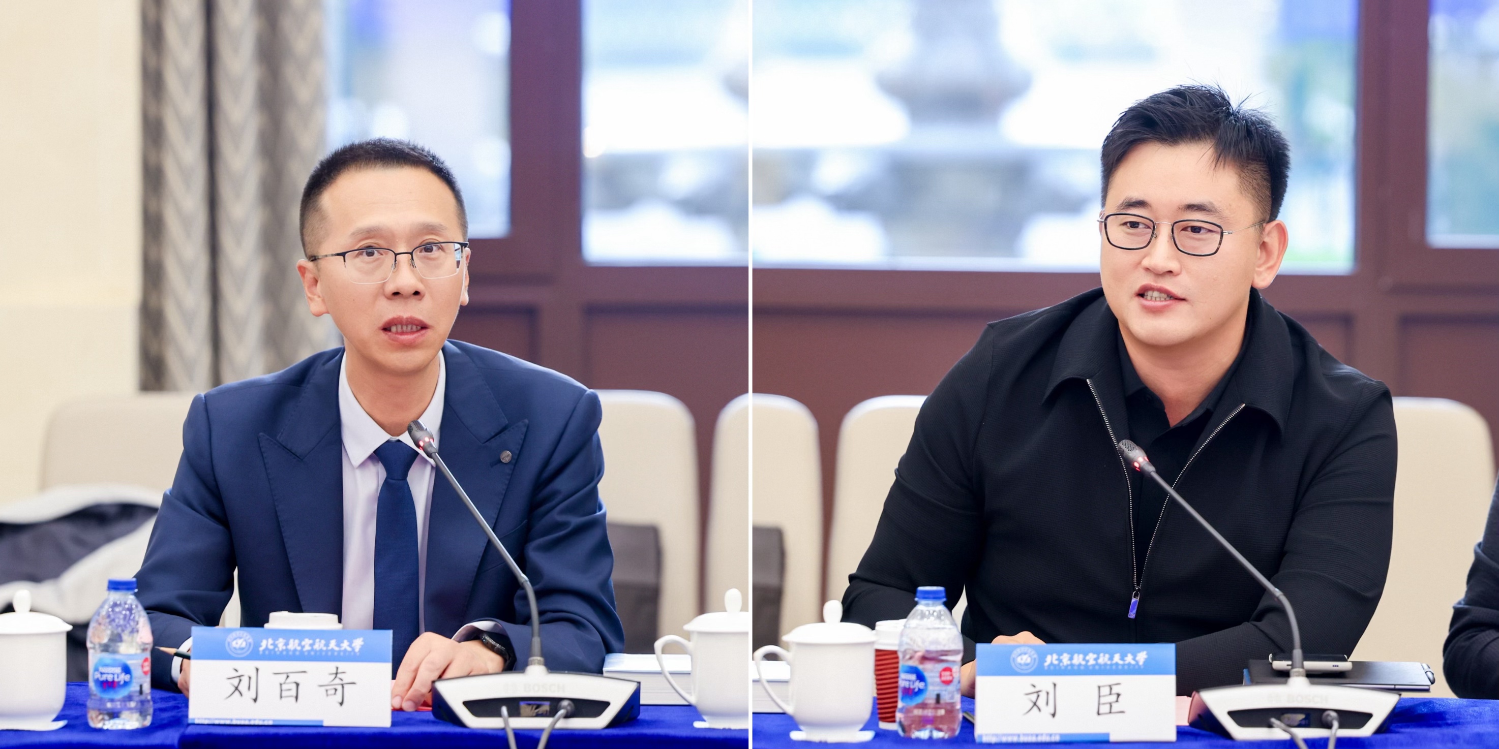 2003级仪器科学与光电工程学院博士校友、北京星河动力航天科技股份有限公司CEO刘百奇表示期待推动与学校在科学研究等方面的更多深层次合作,校企联合攻关助力科技创新。2007级法学院本科校友、中发天信(四川)航空科技股份有限公司创始人刘臣希望能和学校建立校企常态化交流机制,为学校人才培养做出更大贡献。2008级软件学院硕士校友、北京元航投资管理有限公司创始合伙人、董事长张志勇表示会坚决支持母校的发展,秉承“德才兼备、知行合一”的校训,努力为母校做出更大贡献。2010级机械工程及自动化学院博士校友、航宇智造(北京)工程技术有限公司董事长程鹏志回顾了在母校创业成长的经历,期待进一步深化与母校在人才培养、就业指导等方面的交流与合作。